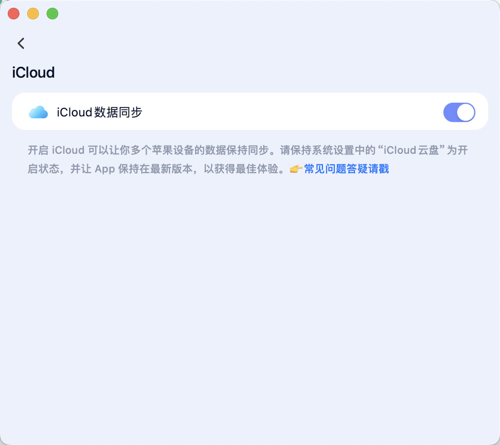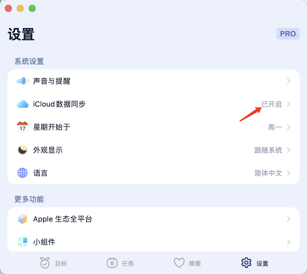 说明:开启 iCloud 需要 pro 会员,如果已经购买会员但在当前设备会员信息掉落,请点击 pro ⻚面底部的“恢复购买”按钮。