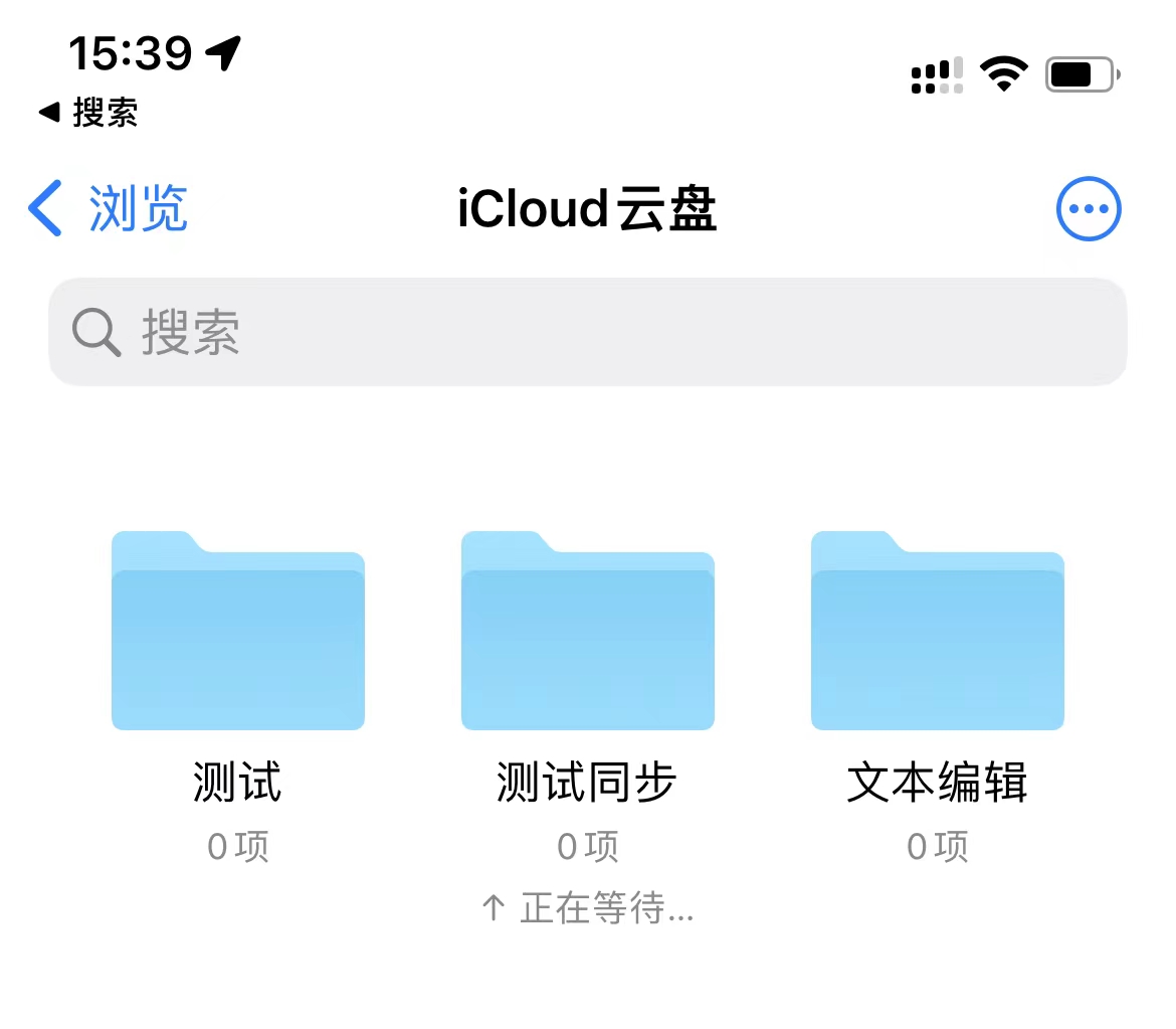 - 在“iCloud 云盘”位置下创建一个文件夹,等待片刻观察文件夹是否被同步。若文件下“正在等待...”字样消失则表示同步完成。若长时间无法完成同步,请联系苹果客服进行 iCloud 云盘修复:400-666-8800。