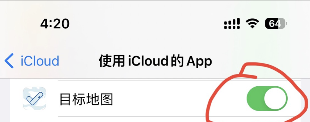 - 重新激活同步:在系统设置中找到“使用iCloud的App”列表,找到“目标地图”的开关,关闭后重新打开。这一步可以解决绝大部分同步卡住、无法同步等问题
