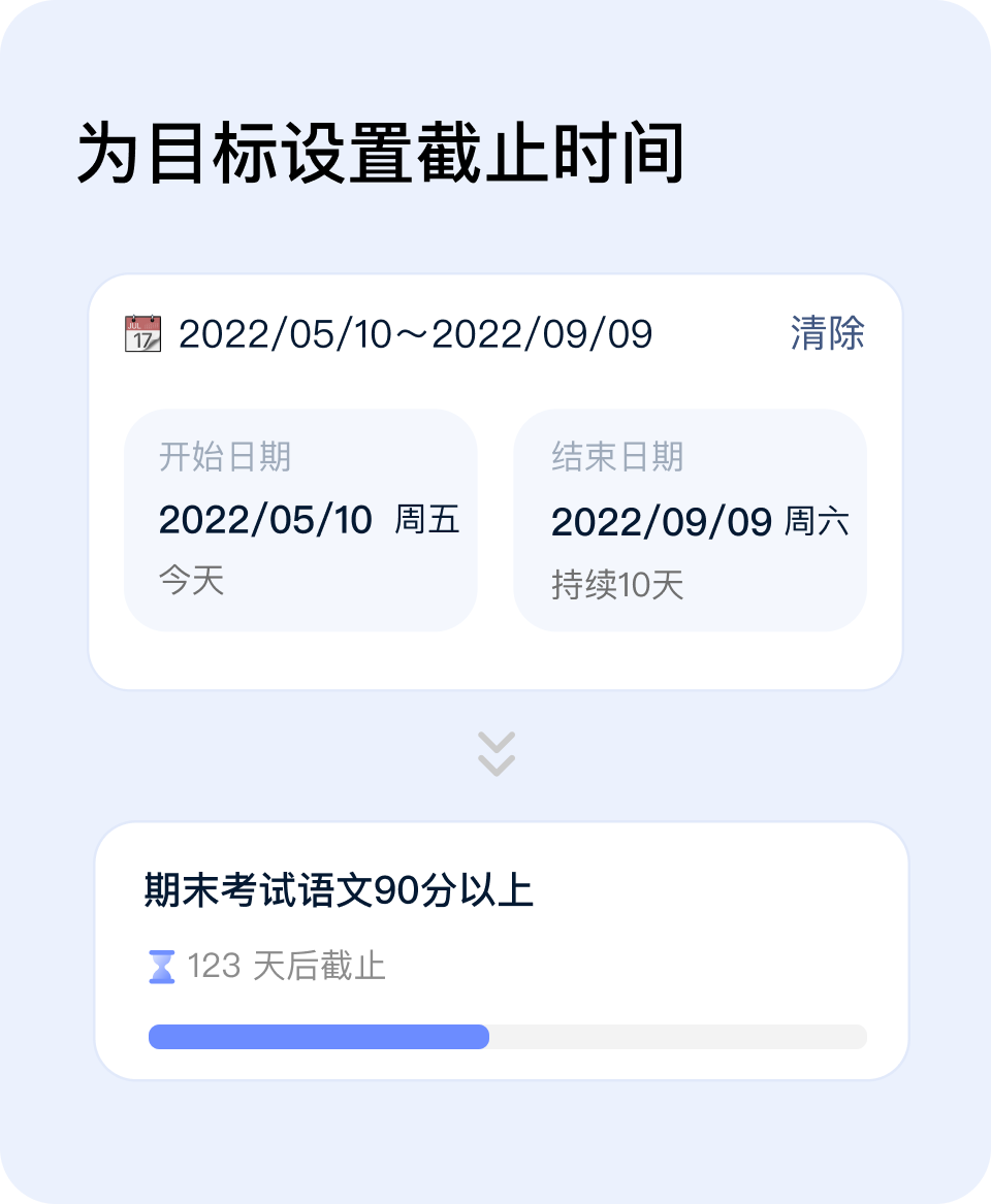 - 如果目标进度落后,可以把“大任务”再拆分为更小的步骤。