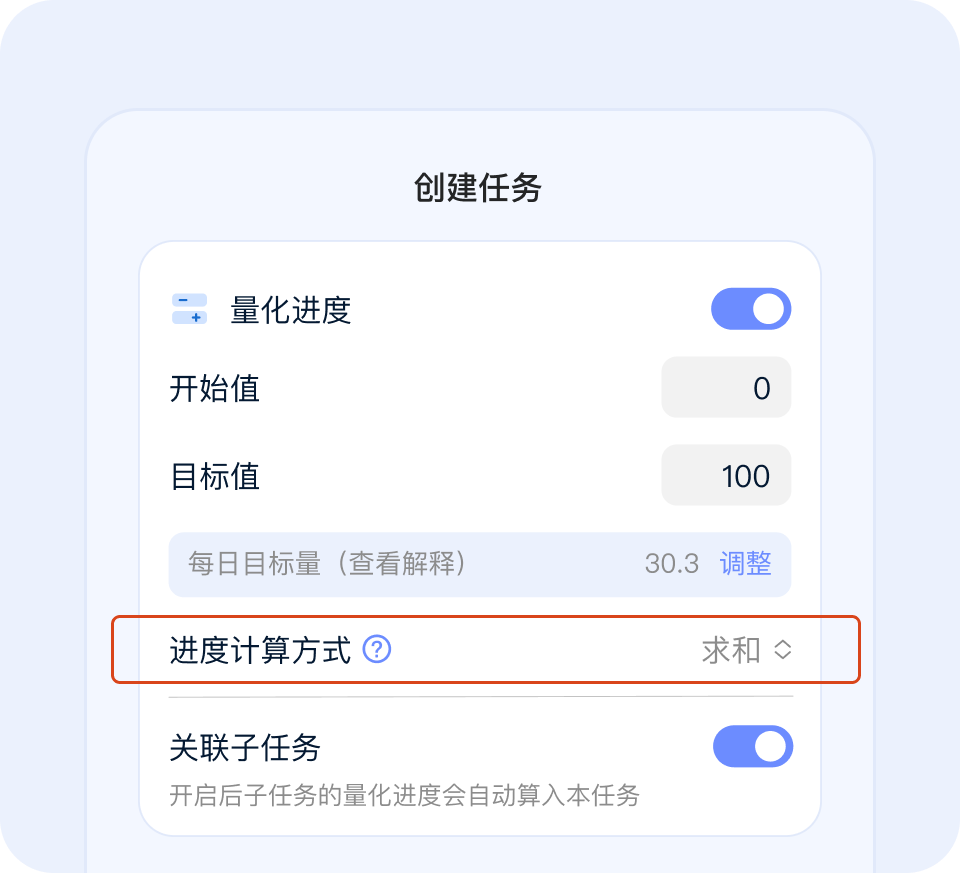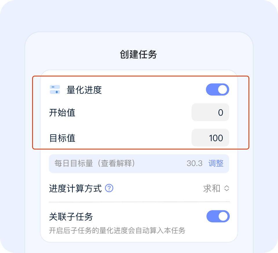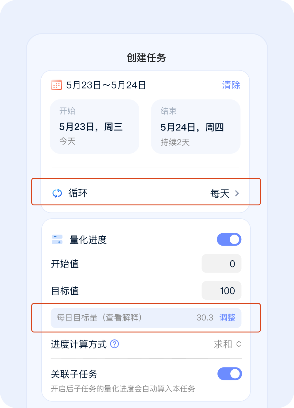 - 如果任务开启了循环,你可以设置 每日目标值。