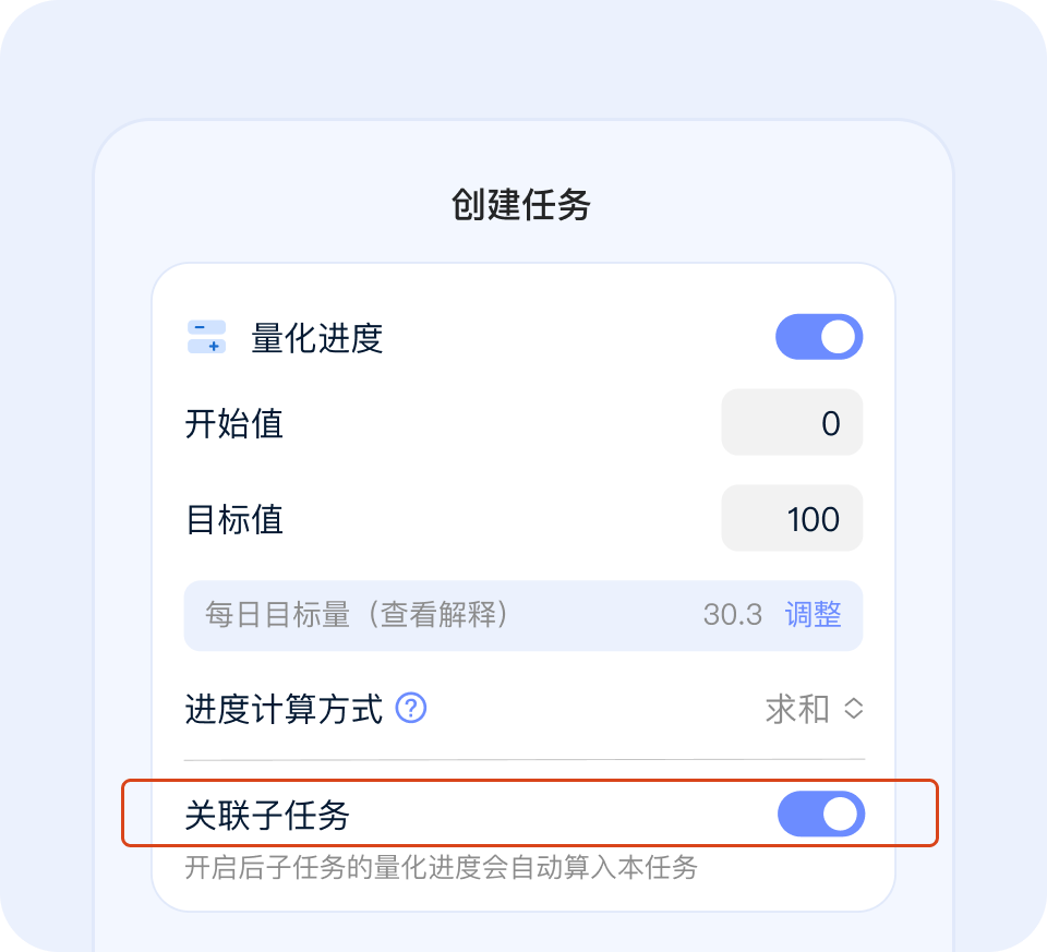 👉 小贴士:联动功能可以帮你把大目标拆解成多个小目标,再自动汇总到整体目标,非常适合复杂任务管理。